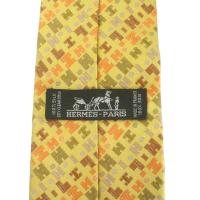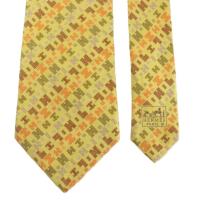 エルメス HERMES ネクタイ 絹 シルク ワイドタイ Hロゴ 総柄 黄色 イエロー /XZ ■GY19 メンズ