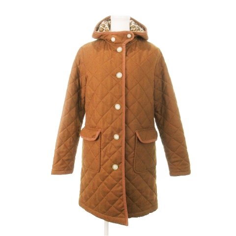 トラディショナルウェザーウェア キルティングコート 中綿 フード パイピング 裏フリース ウール 36 S 茶 ブラウン /AH2 ■GY18