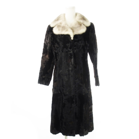 ノーブランド ファーコート ファイアミンク ラム ロング 配色 切替 ミックス 黒 ブラック 茶 ブラウン /CK14 ■GY18 レディース