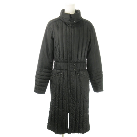 アンナモリナーリ ANNA MOLINARI 中綿コート ロング スタンドカラー ダブルジップ ウエストマーク 42 M 黒 ブラック /AO12 ■GY18