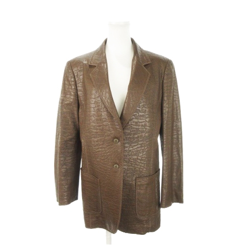 イタリヤ 伊太利屋 GK フェイクレザージャケット テーラード ミドル丈 型押し 11 茶 ブラウン /AH17 ■GY18 レディース
