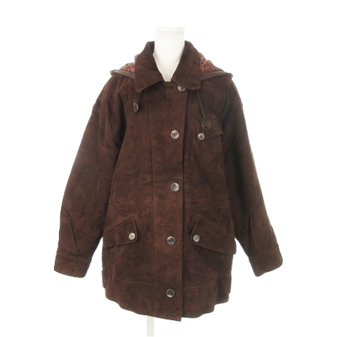 メルローズ MELROSE スエードジャケット 中綿 ラム 本革 ステンカラー フーディー オーバーサイズ 茶 ブラウン ■GY18 レディース