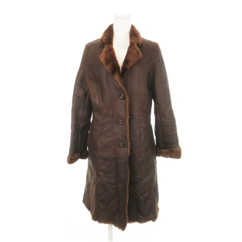 トレンドクリップス trend clips ムートンコート 本革 ラム ロング丈 テーラーカラー L 茶 ブラウン /AH1 ■GY18 レディース