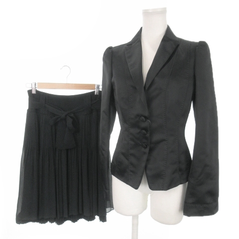 コトゥー COTOO SHUZO スーツ セットアップ 2点セット テーラードジャケット 総裏地 スカート ひざ丈 シルク混 絹 38 M 黒