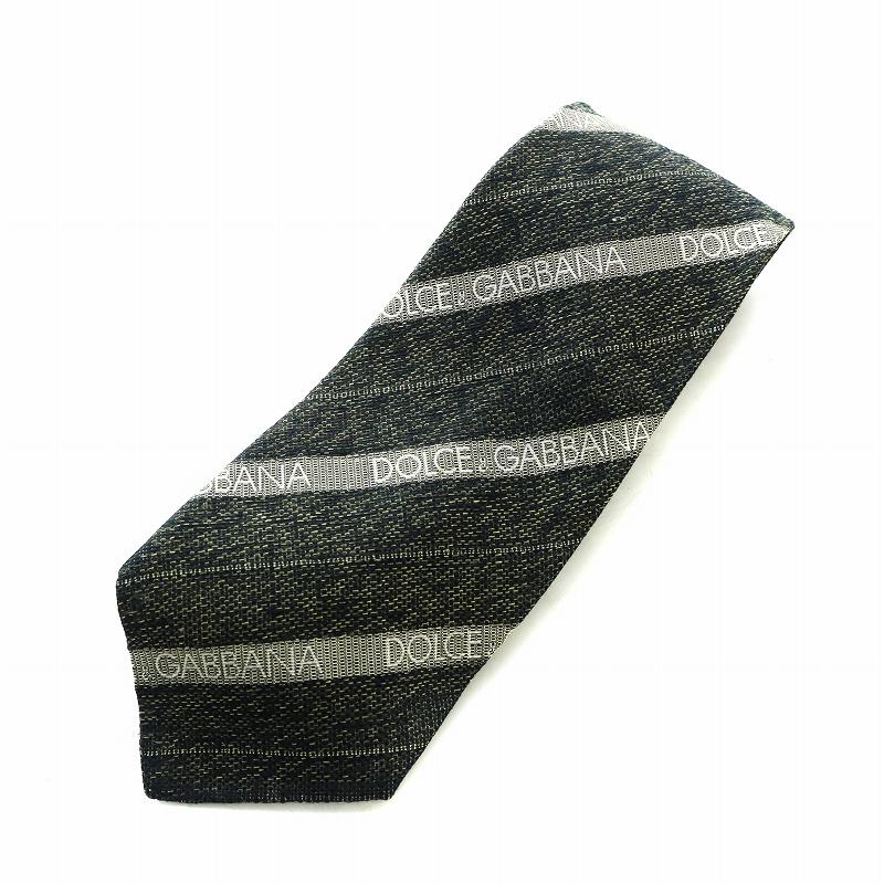 ドルチェ&ガッバーナ ドルガバ DOLCE&GABBANA ネクタイ ワイドタイ ロゴ ストライプ 総柄 絹 シルク 黒 ブラック ■GY11 /MQ メンズ