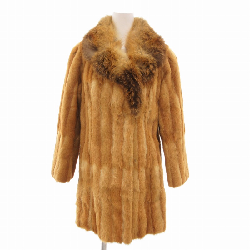 Parion ファーコート ミンク 襟 フォックス 毛皮 ミドル丈 ベージュ ■GY18 /TZ