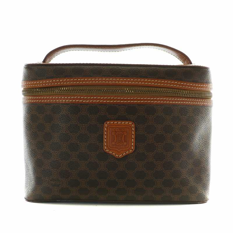セリーヌ CELINE ヴィンテージ マカダム バニティバッグ ハンドバッグ PVC レザー トリオンフ ロゴ 総柄 茶 ブラウン レディース