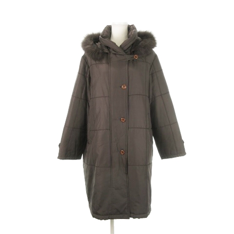 中綿ロングコート スタンドカラー フーディー シルク 絹 フォックスファー F 茶 ブラウン /AH11 ■GY18 レディース