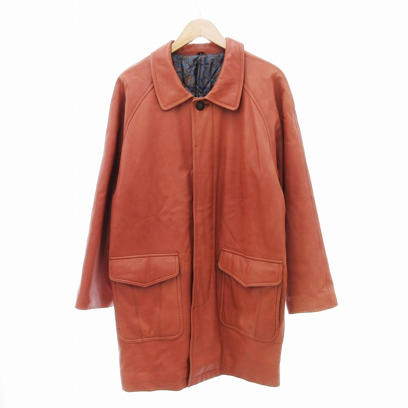 エンジェルレザー ANGEL LEATHER レザーコート ステンカラー 中綿 ミドル丈 M ピンク オレンジ /JS ■GY11 メンズ