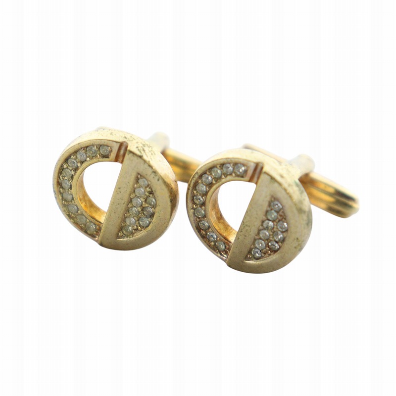 クリスチャンディオール Christian Dior カフスボタン アクセサリー CD ロゴ ラインストーン ゴールド色 ■GY18 /MQ ■OH メンズ