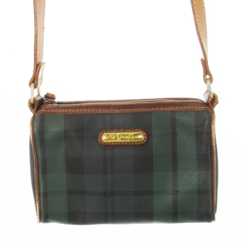 ポロ ラルフローレン POLO RALPH LAUREN ポシェット ショルダーバッグ PVC レザー 革 ロゴプレート ブラックウォッチ 緑