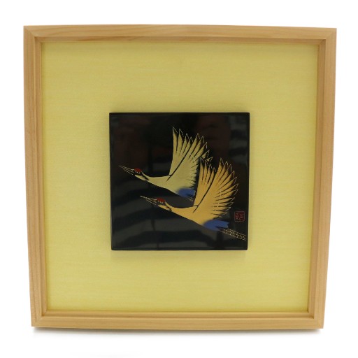 輪島塗 八井汎親氏 漆額 額装 蒔絵 漆絵 飾 漆板 漆器 鶴 ツル つる 黒 ブラック 黄 イエロー /MP ■GY11 その他
