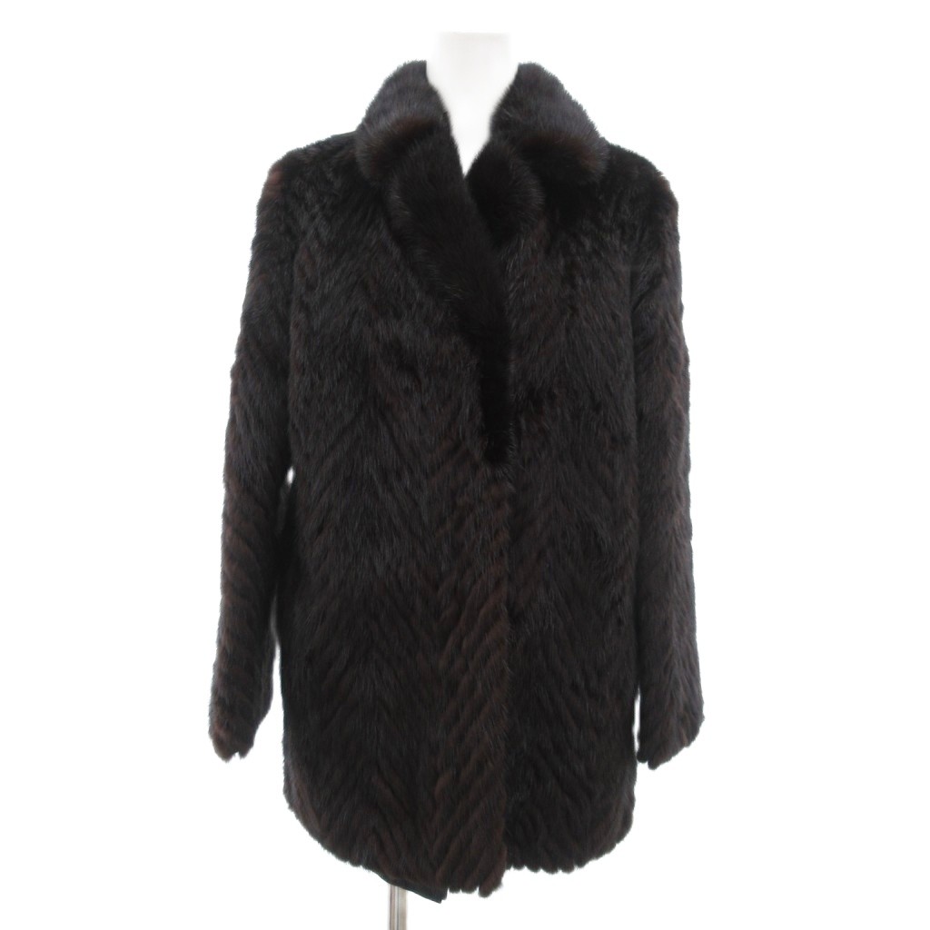 ノーブランド ファーコート 毛皮 ミンク ハーフ丈 9 ダークブラウン /JS ■GY18 レディース