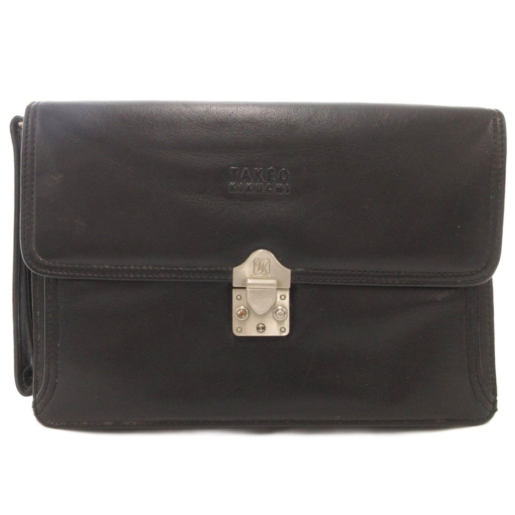 タケオキクチ TAKEO KIKUCHI クラッチバッグ セカンドバッグ レザー 本革 黒 ブラック ロゴ /AE ■GY18 メンズ