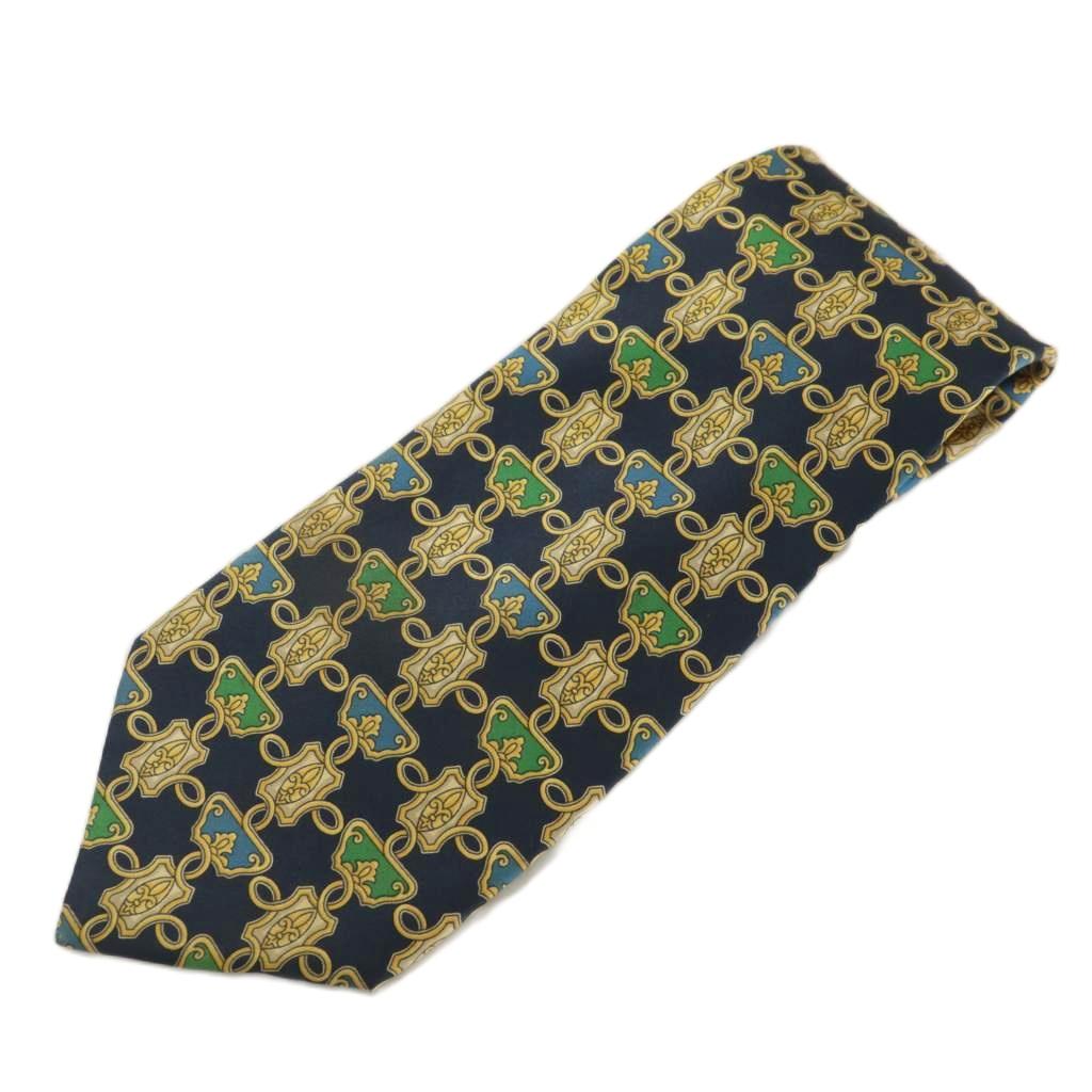 フェンディ FENDI ネクタイ 絹 シルク ワイドタイ 総柄 ロゴ 紺 ネイビー ゴールド色 /XZ ■OH ■GY18 メンズ