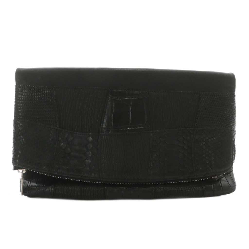 サトウミツオ satoh mitsuo クラッチバッグ セカンドバッグ 二つ折り クロコダイル パイソン レザー パッチワーク 黒 ブラック