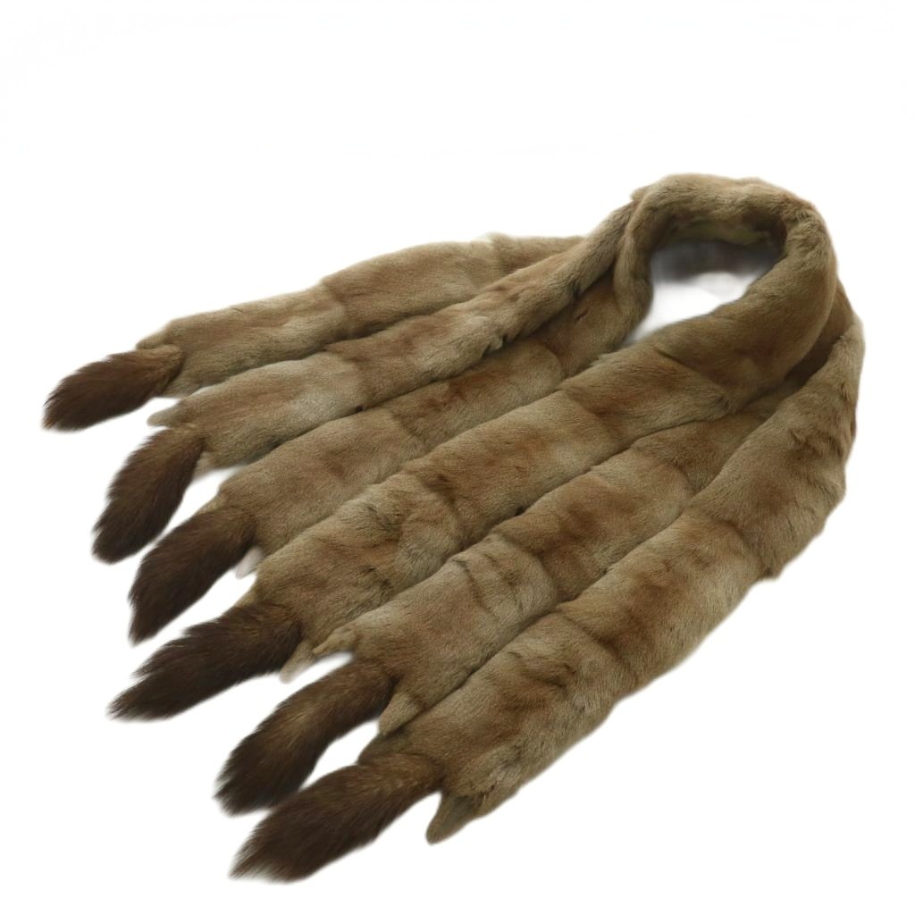 ノーブランド ティペット マフラー 襟巻き 毛皮 リスファー タッセル 茶色 ブラウン /XZ ■GY11 レディース