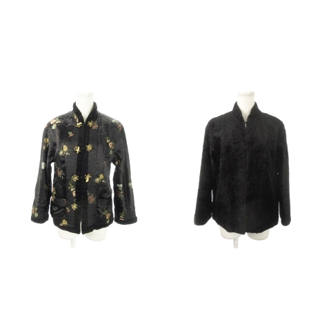 HONG KONG FASHIONS TRADE MARK リバーシブル スタンドカラージャケット ファージャケット チャイナボタン 花柄 刺繍 無地 40 L 黒