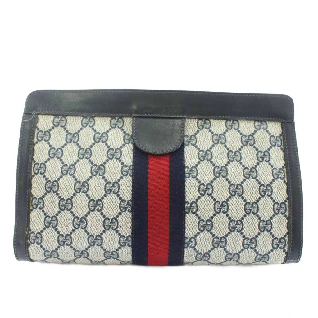 グッチ GUCCI クラッチバッグ セカンドバッグ PVC レザー GG柄 シェリーライン 総柄 ベージュ 紺 ネイビー /XZ ■OH ■GY18 メンズ