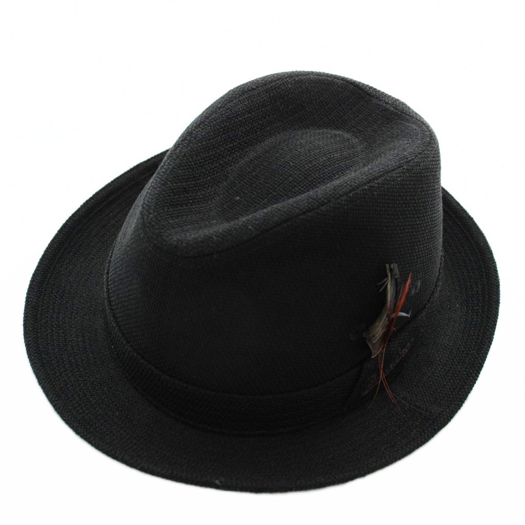 ボルサリーノ Borsalino 帽子 ハット 中折れ帽 羽 ロゴ 55cm 黒 ブラック /XZ ■GY11 メンズ