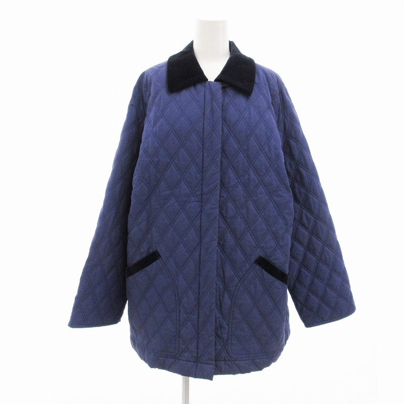 ダックス DAKS ヴィンテージ キルティングコート 切替 ベロア 9AR 紫 パープル 紺 ネイビー /VU△ 0307 レディース