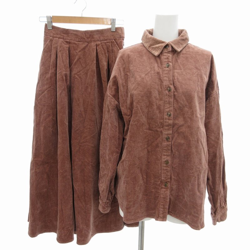 ナイスクラップ NICE CLAUP セットアップ コーデュロイ シャツジャケット ロングスカート フレア イージー ストレッチ F ピンク /FT