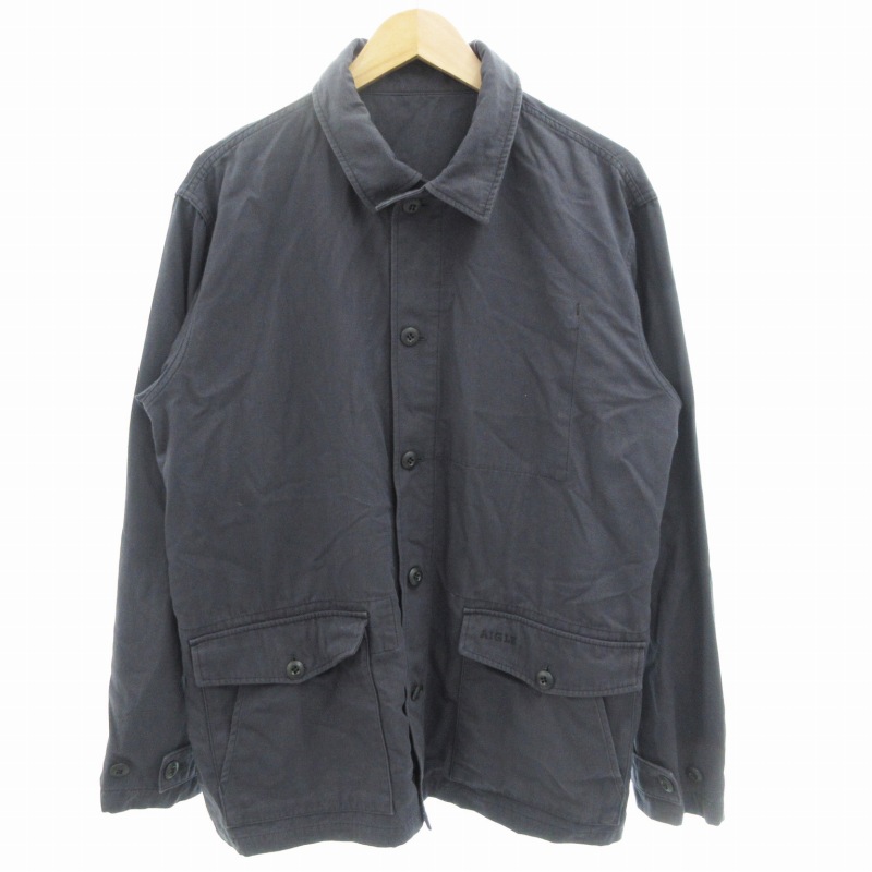 エーグル AIGLE シャツジャケット カバーオール 長袖 刺繍 ナイロン XL 紺 ネイビー /GV メンズ