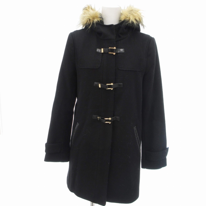 コールハーン COLE HAAN ダッフルコート フェイクファー フード ミドル丈 S 黒 ブラック /UD レディース