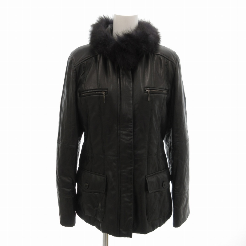 アジューダ AJUDA ラムレザージャケット ブルゾン コート フォックスファー切替 ダブルジップ 40 L 黒 ブラック /FT レディース