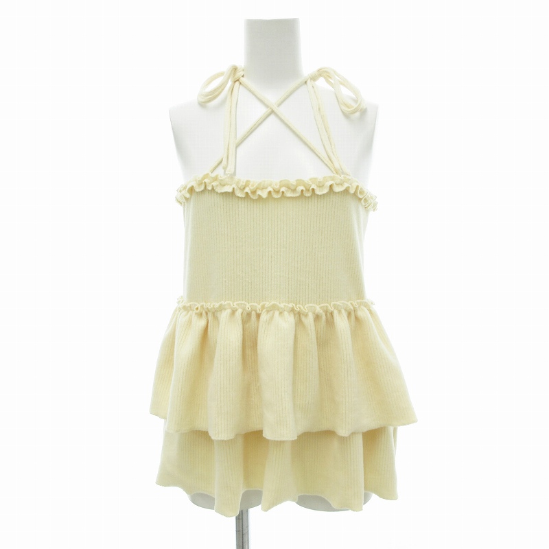 クリア CLEAR チュニック キャミソール リブニット クロスストラップ フリル チュール F 黄 イエロー /JS ■GY39 レディース