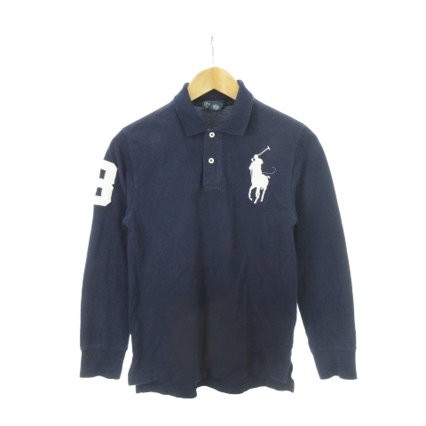 ポロ バイ ラルフローレン Polo by Ralph Lauren ポロシャツ 長袖 ビッグポニー ロゴ刺繍 鹿の子 ボーイズ 男の子 M 10-12 紺 ネイビー