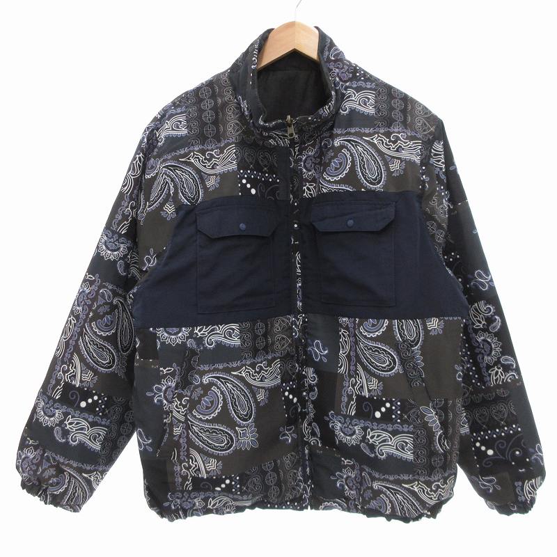 NATIVE LOUNGE 中綿ジャケット リバーシブル ペイズリー柄 M 紺 ネイビー 黒 ブラック /UO メンズ
