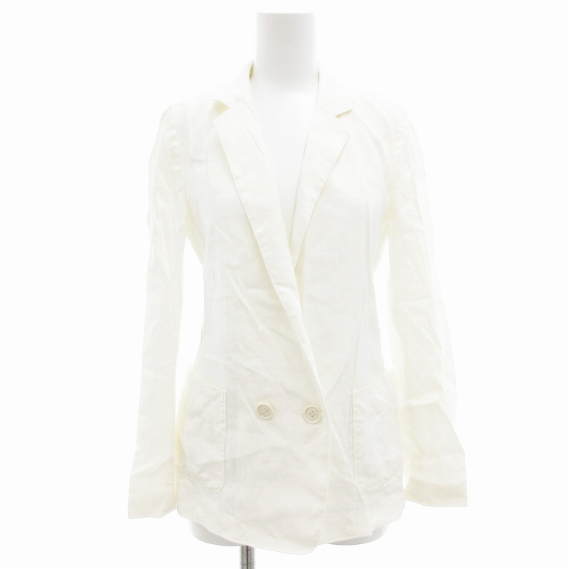 ユナイテッドアローズ UNITED ARROWS ダブルテーラードジャケット ストレッチ 背抜き 麻 リネン 38 白 ホワイト /GV レディース