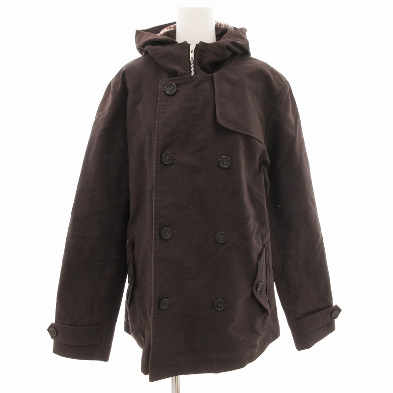 アーバンリサーチ URBAN RESEARCH ピーコート ショート丈 フーデット付 裏地チェック 40 茶 ブラウン /GV レディース