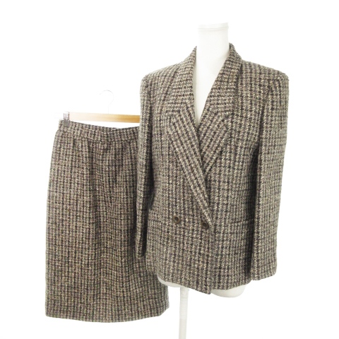 オックスフォード OXFORD スーツ セットアップ 2点セット テーラードジャケット タイトスカート ツイード チェック モヘア混 茶