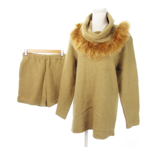 アンドレルチアーノ ANDRE LUCIANO セットアップ 2点セット ニット セーター 長袖 付け襟 ショートパンツ 茶 ブラウン /MN7 レディース