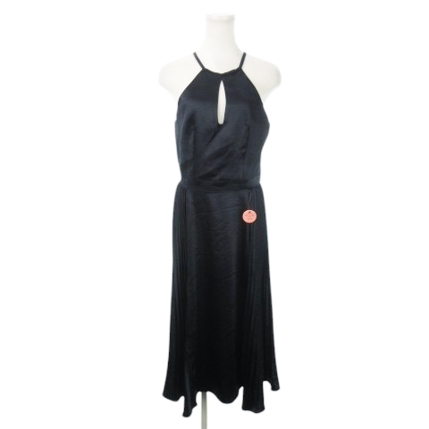 未使用品 チチロンドン CHI CHI LONDON ドレス ロングワンピース キーホールネック アメリカンスリーブ 切替 プリーツ 光沢感 36 S 紺