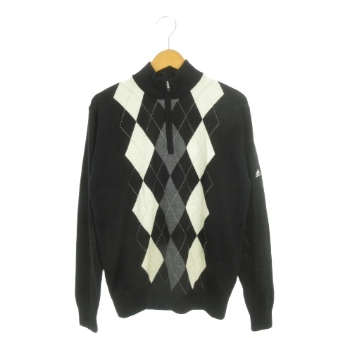 アディダス adidas テーラーメイド ニット セーター ハーフジップ 長袖 アーガイル柄 ゴルフ S/P 黒 ブラック /AH17 ■GY99 メンズ