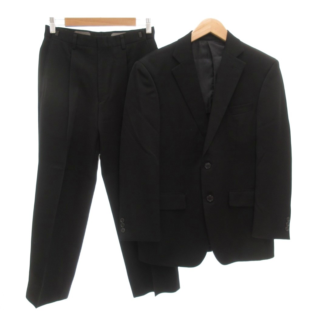 ファラゴ FARAGO スーツ セットアップ シングル テーラードジャケット パンツ 2B センターベント 背抜き ウール A4 黒 ブラック /GV