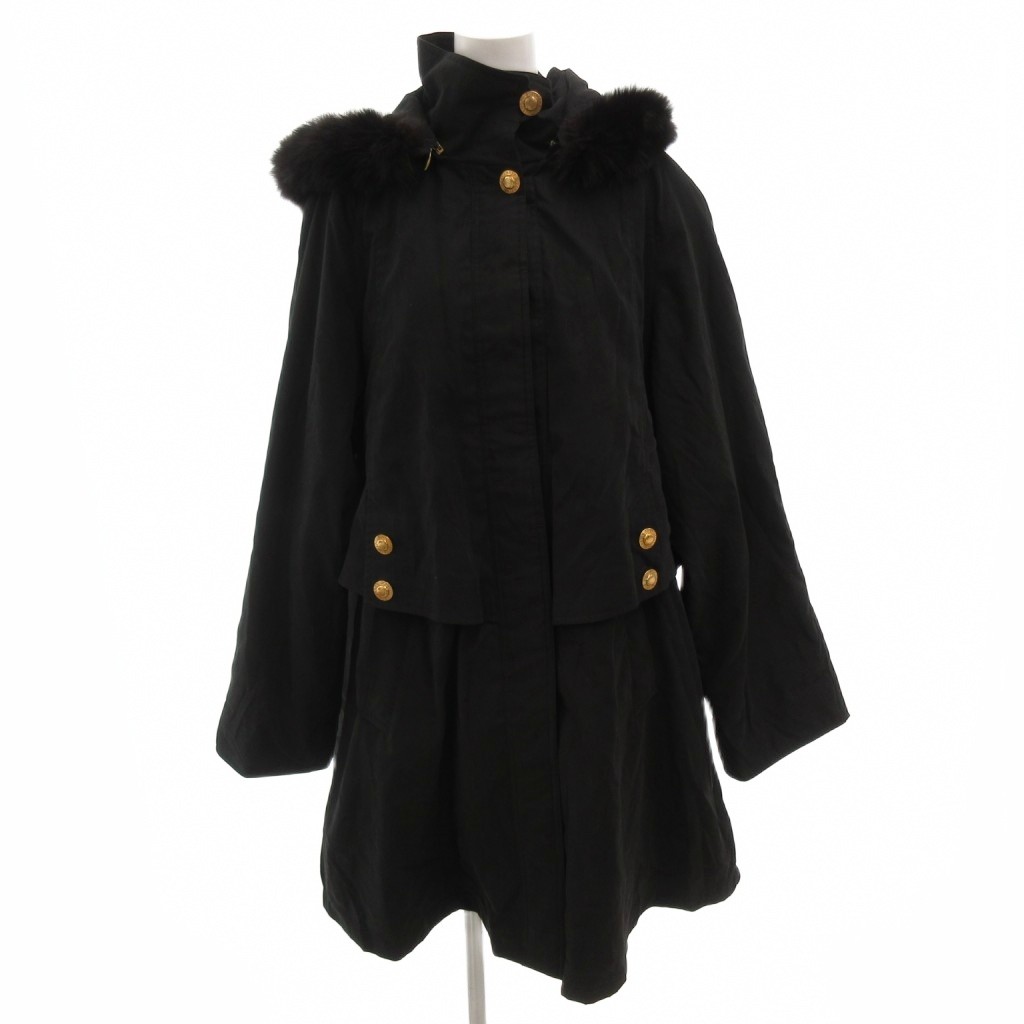 ジャンルイシェレル JEAN-LOUIS SCHERRER フォックスファーコート フード 金ボタン ロング M 黒 ブラック /FF レディース