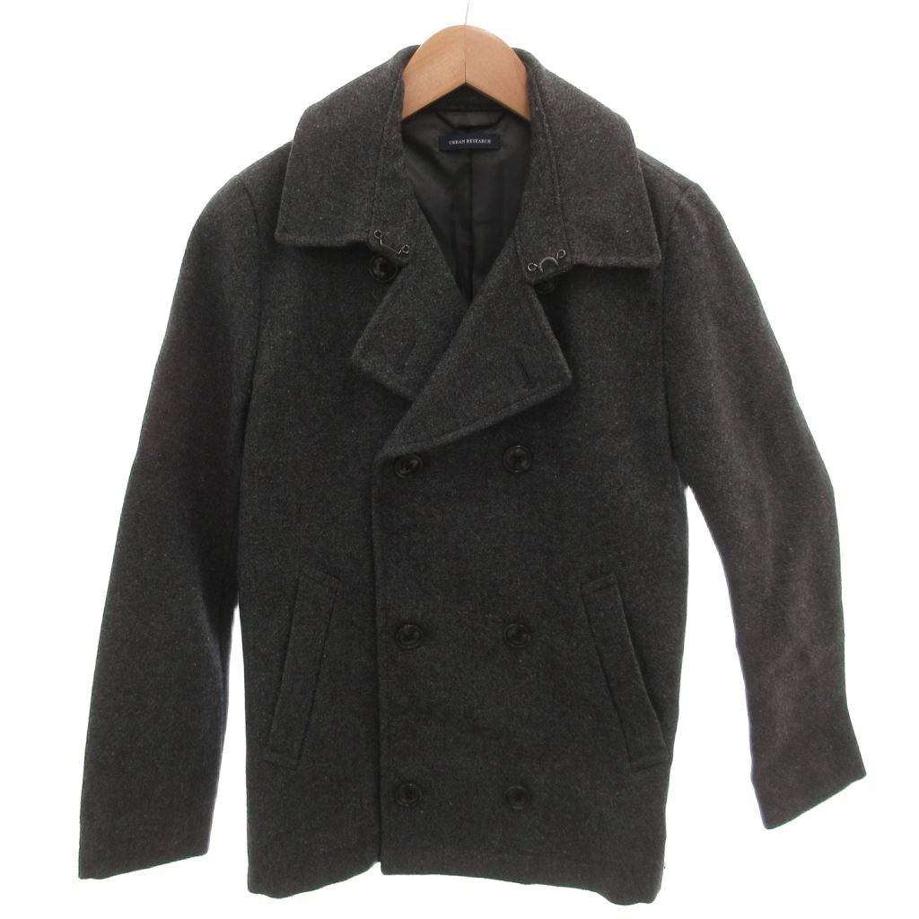 アーバンリサーチ URBAN RESEARCH 美品 ピーコート ジャケット ウール M 灰色 グレー ダブルブレスト テーラードカラー 長袖 WME-1541065T