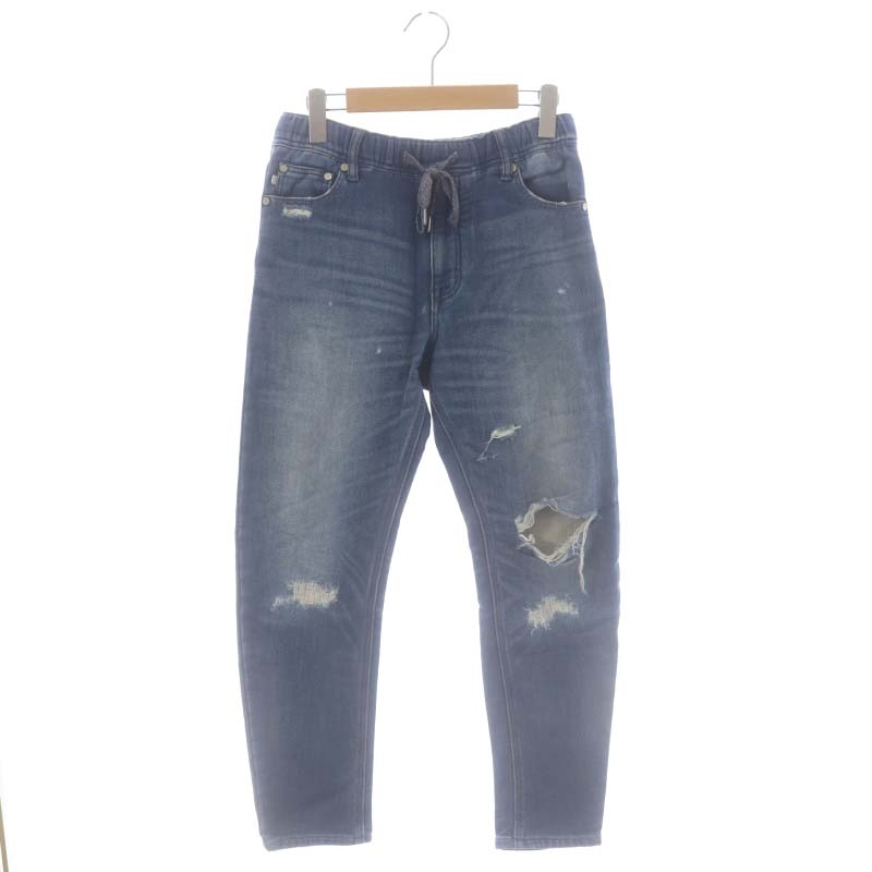オブレクト oblekt 加工ダメージインディゴストレッチデニムパンツ ジョガー イージー ジップフライ コットン S 青