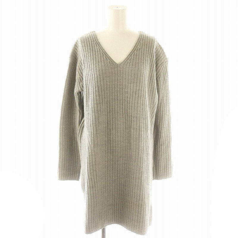 メイソングレイ MAYSON GREY Vネックニットワンピース チュニック 膝丈 長袖 サイドスリット 2 グレー /ES ■OS レディース