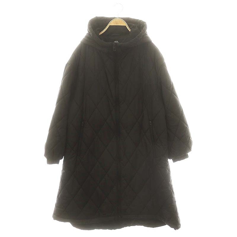 ザラ ZARA フーディ キルティングコート 中綿 ジップアップ ロング L 黒 /HK ■OS レディース