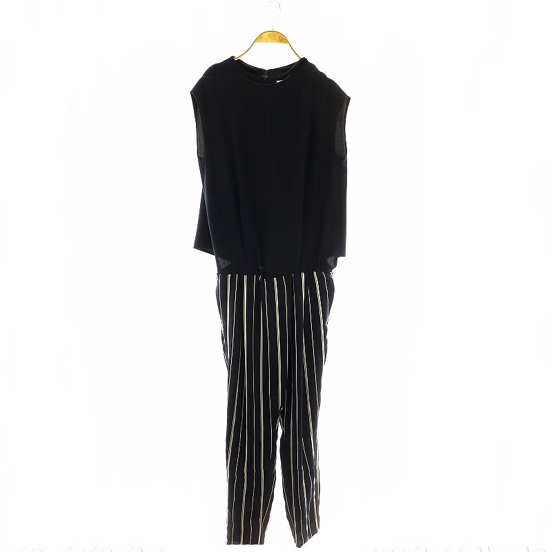 プラステ PLST ストライプジャンプスーツ オールインワン サロペット テーパードパンツ M ネイビー オフホワイト /DO ■OS レディース