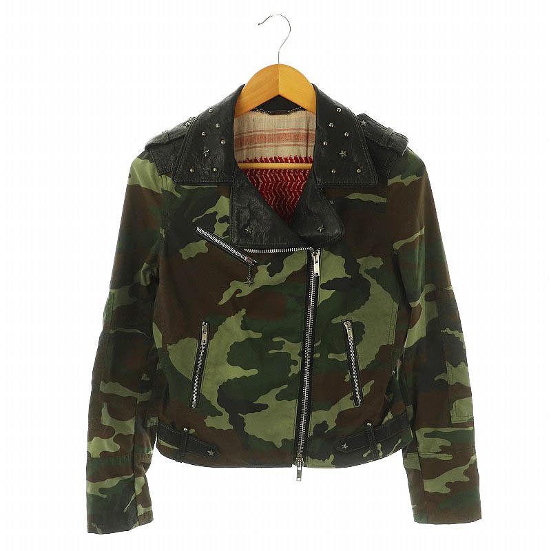 ルセンティエ LeSentier カモフラライダースジャケット ダブル 切替 42 黒 ブラック カーキ /AT ■OS ■SH メンズ