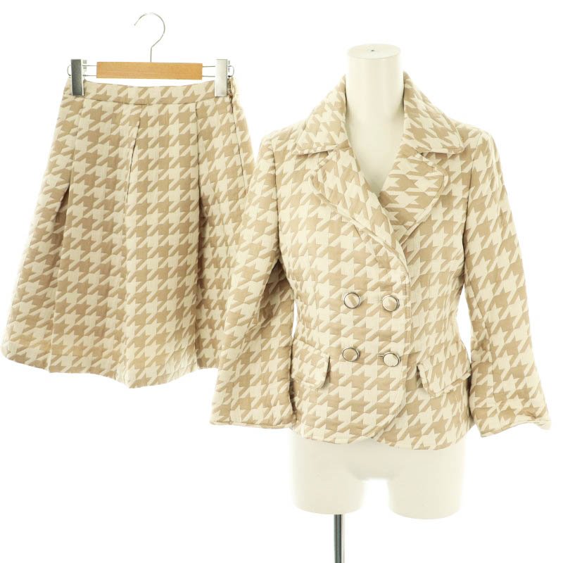 グレースクラス GRACE Class セットアップ 千鳥格子 テーラードジャケット スカート 台形 36 34 ベージュ アイボリー ■OS レディース