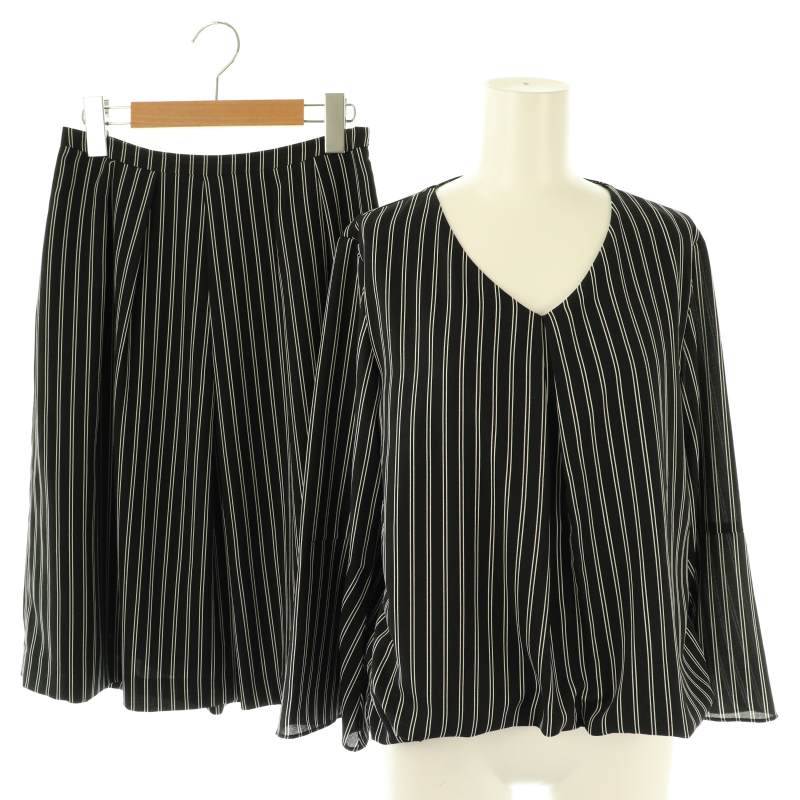 トランスワーク TRANS WORK セットアップ ストライプ ブラウス スカート 38 36 ブラック ホワイト /DO ■OS レディース