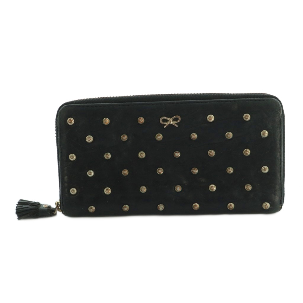 アニヤハインドマーチ ANYA HINDMARCH 長財布 ロングウォレット ラウンドファスナー 小銭入れ ラウンドスタッズ 黒 /MI ■OS レディース