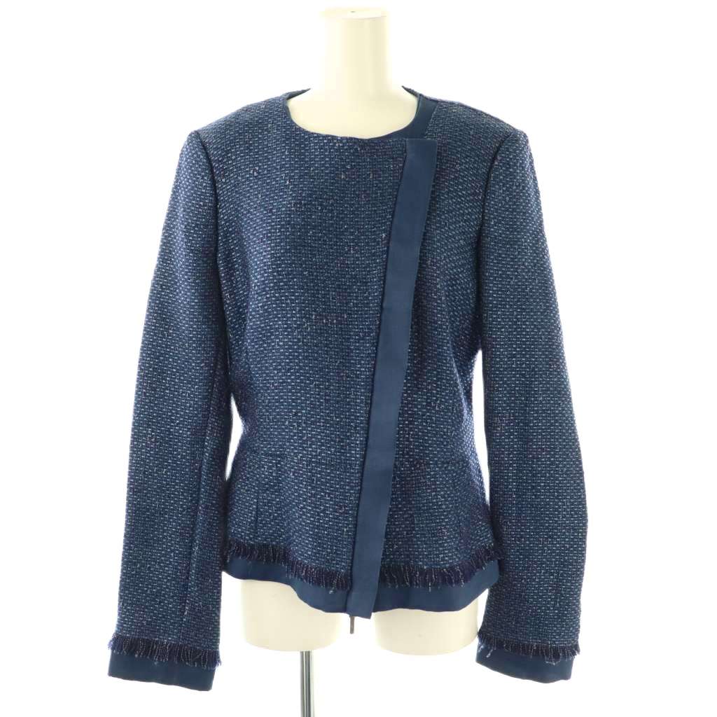 パオラフラーニ PAOLA FRANI ジップアップ ツイード ノーカラージャケット 42 ネイビー /ES ■OS レディース